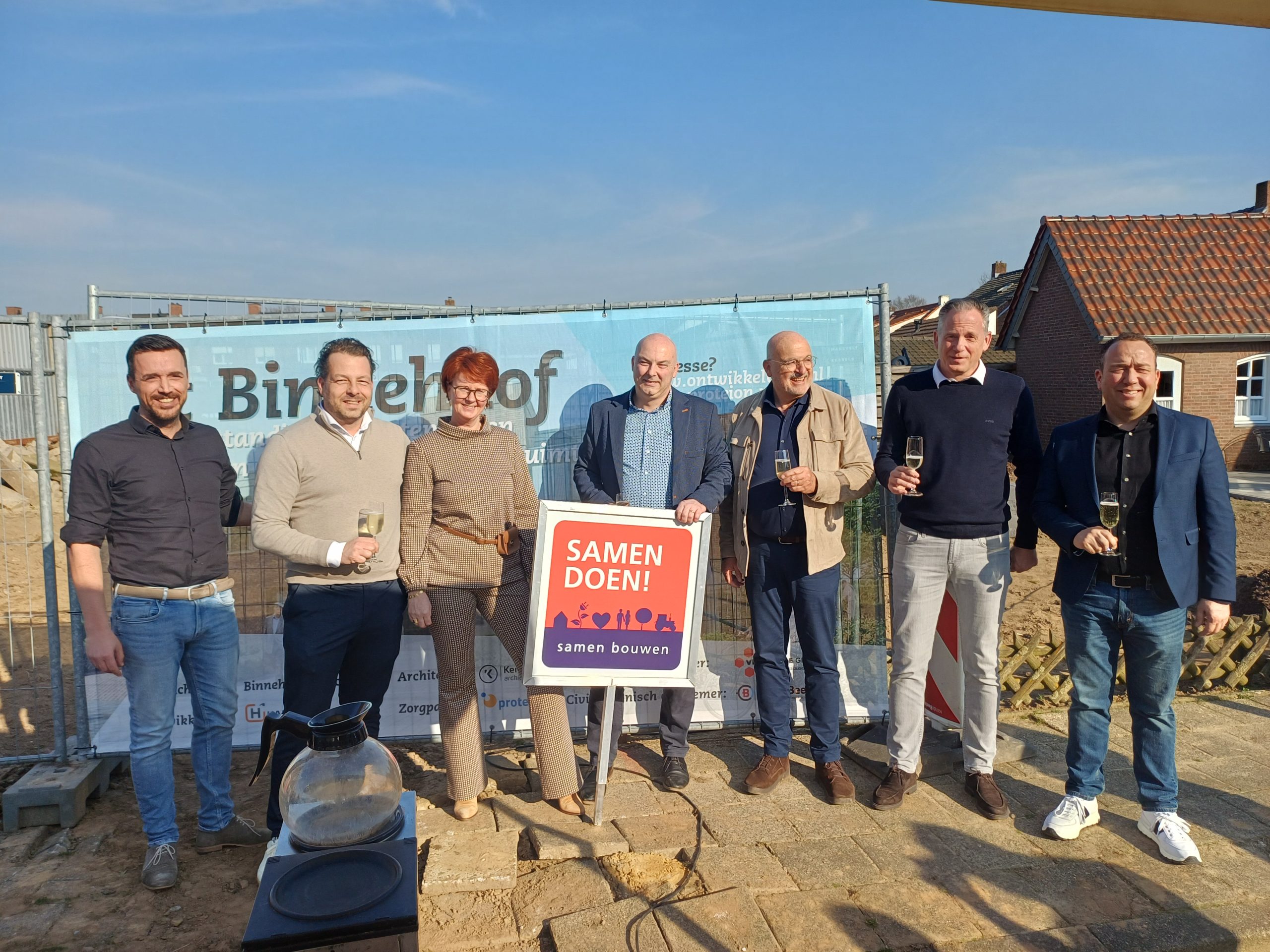 Gisteren hebben we in Melick een mooie mijlpaal bereikt: met het onthullen van het bouwbord heeft wethouder Slangen (gemeente Roerdalen) officieel het startsein gegeven voor de bouw van ’t Binnehaof.